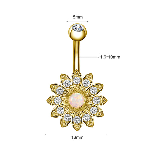 14g Flower Belly Button Rings Gold Zirconia Belly Navel Piercing Jewelry