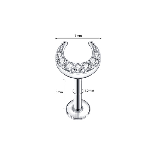 16G Moon Crystal Labret Rings Stainless Steel Ball Tragus Helix Conch Piercing