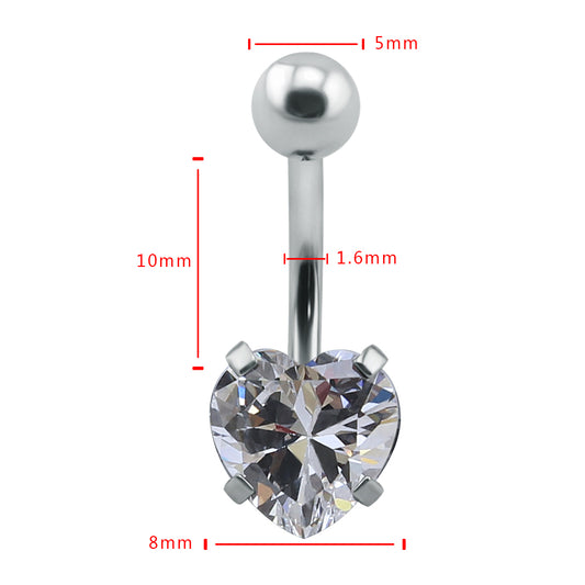 14g Heart Shaped Belly Button Rings Cubic Zirconia Navel Piercing Jewelry