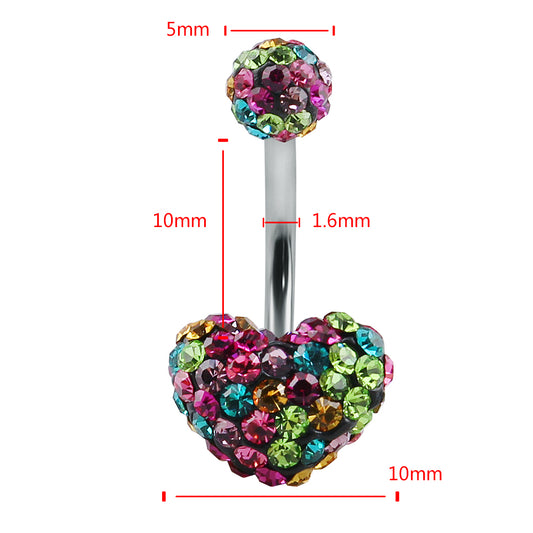 14g Heart Big Crystal Belly Button Rings Stainless Steel Navel Piercing Jewelry