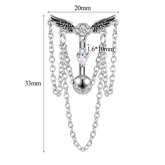 Wings with Chain Belly Button Rings Flower Heart Crystal Belly Navel Piercing