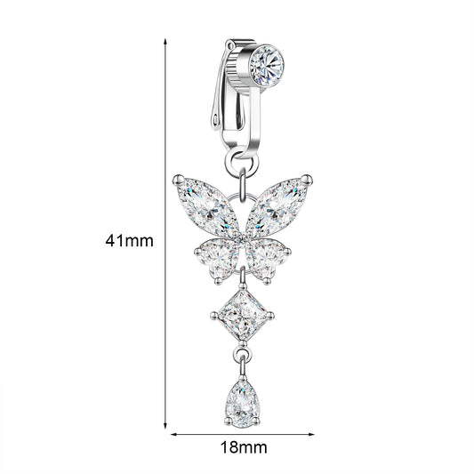Fake Butterfly Dangle Belly Navel Clip Crystal Belly Button Ring