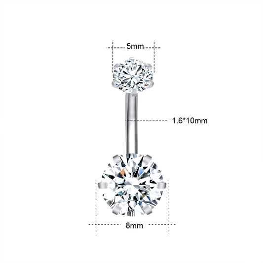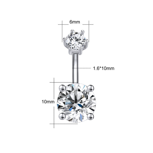 Big Round Cubic Zircon Belly Button Rings AB White Crystal Belly Navel Piercing