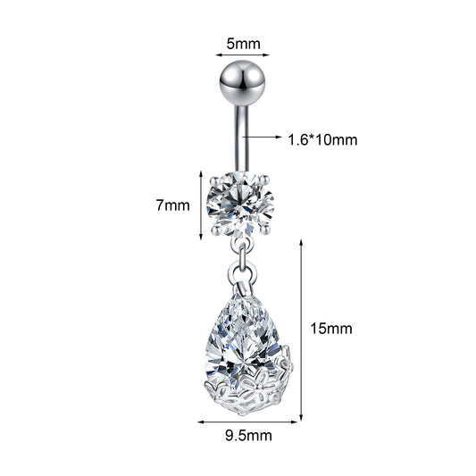 14g Water Drop Pendant Belly Button Rings Zirconia Belly Navel Piercing Jewelry