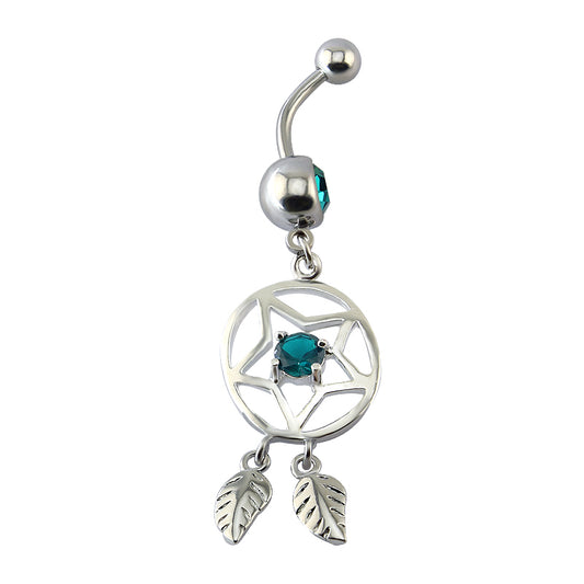 14g Dreamcatcher Stainless Steel Belly Button Rings Blue Zircon Dangle Navel Piercing Jewelry