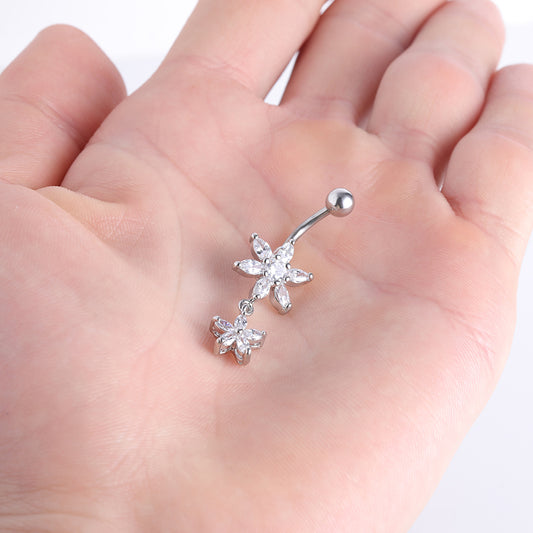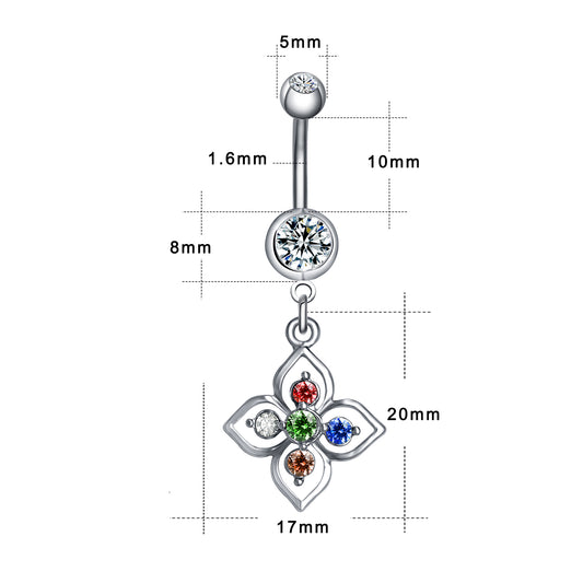 Flower Zirconia Belly Button Piercing Dangle Navel Ring Body Jewelry