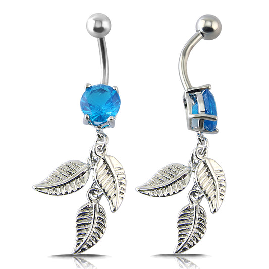 14g Blue Zircon Leaf Dangle Belly Button Rings Stainless Steel Navel Piercing Jewelry