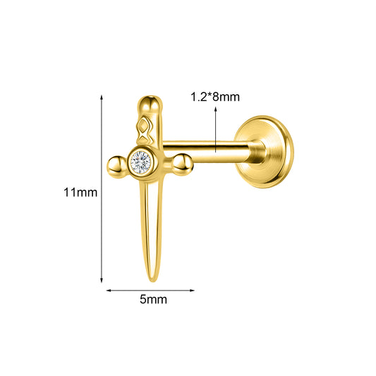 16g S925 Sterling Silver Labret Ring Sword Stud Earring Conch Helix Lip Piercing