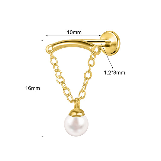 16g S925 Sterling Silver Labret Ring Pearl Stud Earring Conch Helix Lip Piercing