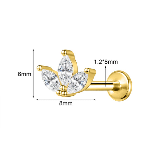 16g G23 Titanium Labret Ring Leaf Stud Earring Threaded Conch Helix Lip Piercing