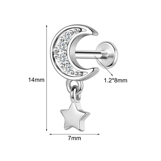 16g Star Dangle Labret Ring Clear Zircon Stud Earring Conch Helix Lip Piercing
