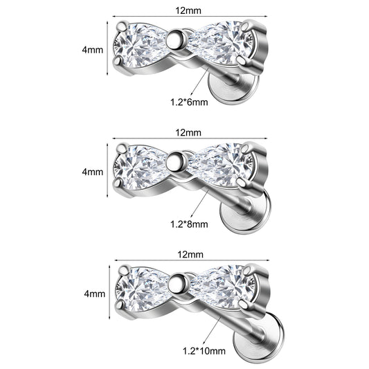 16g Bow Labret Ring Push in Stud Earring Threadless Conch Helix Lip Piercing