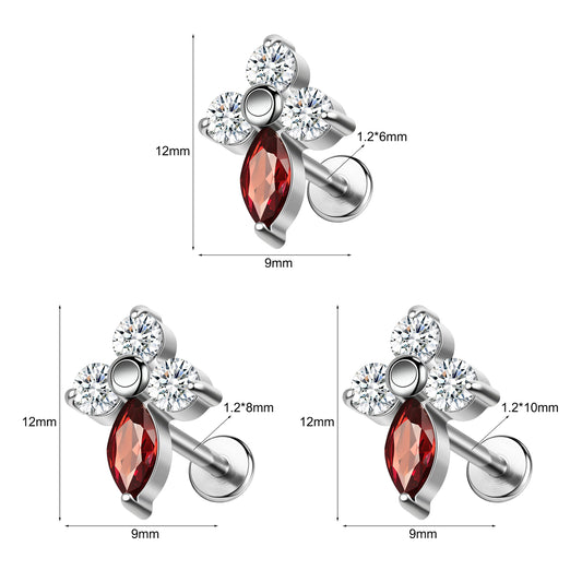 16g Red Zircon Labret Ring Push in Stud Earring Threadless Conch Helix Lip Piercing