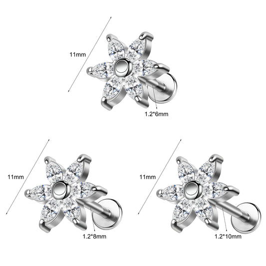 16g Flower Labret Ring Push in Stud Earring Threadless Conch Helix Lip Piercing