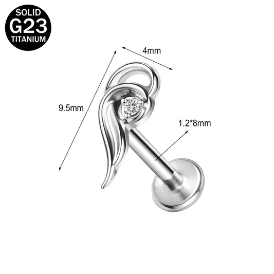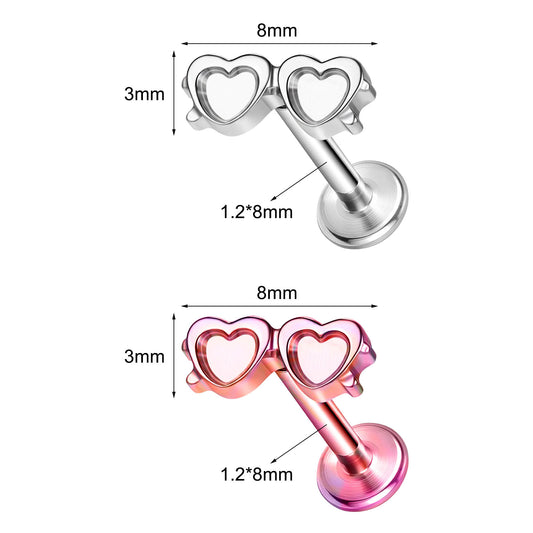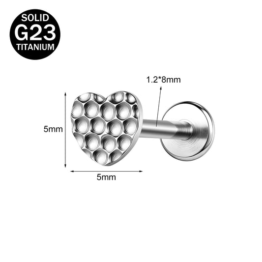 16g G23 Titanium Labret Ring Heart Stud Earring Threaded Conch Helix Lip Piercing