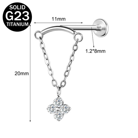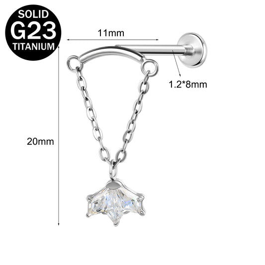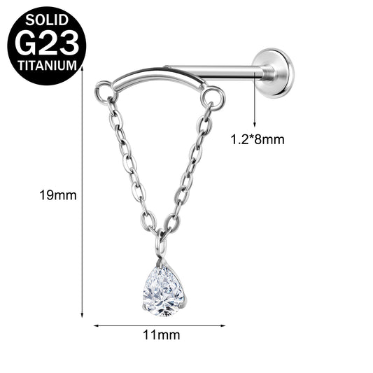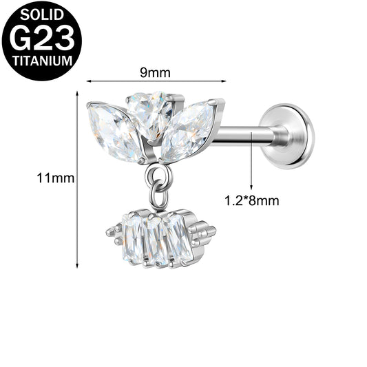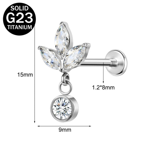 16g G23 Titanium Labret Ring Zircon Dangle Stud Earring Threaded Conch Helix Lip Piercing