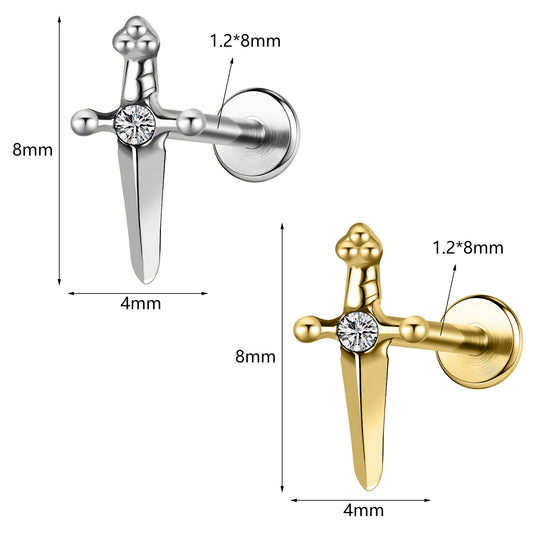 16g G23 Titanium Labret Ring Sword Stud Earring Threaded Conch Helix Lip Piercing