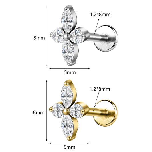 16g G23 Titanium Labret Ring Bling Zircon Stud Earring Threaded Conch Helix Lip Piercing