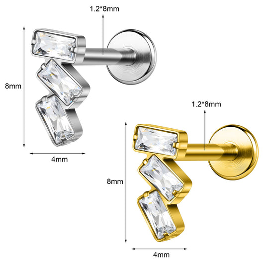 16g G23 Titanium Labret Ring Clear Zircon Stud Earring Threaded Conch Helix Lip Piercing