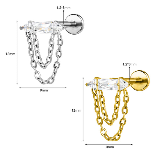 16g G23 Titanium Labret Ring Chain Dangle Stud Earring Threaded Conch Helix Lip Piercing