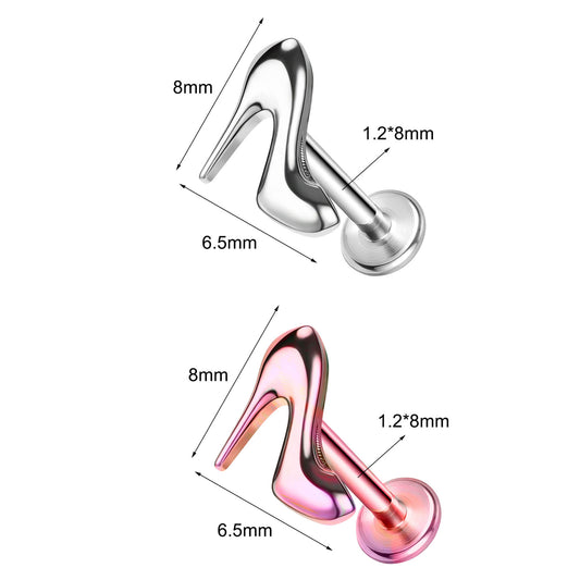 16g G23 Titanium Labret Ring High Heels Stud Earring Threaded Conch Helix Lip Piercing