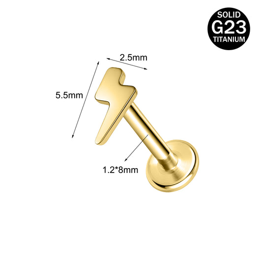16g G23 Titanium Labret Ring Lightning Stud Earring Threaded Conch Helix Lip Piercing