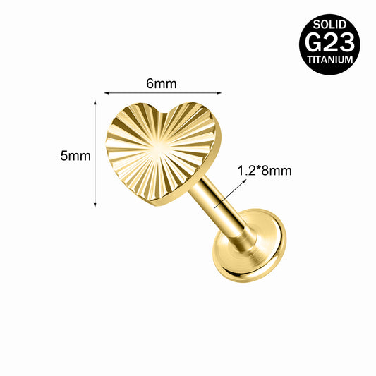 16g G23 Titanium Labret Ring Heart Stud Earring Threaded Conch Helix Lip Piercing