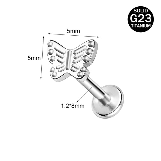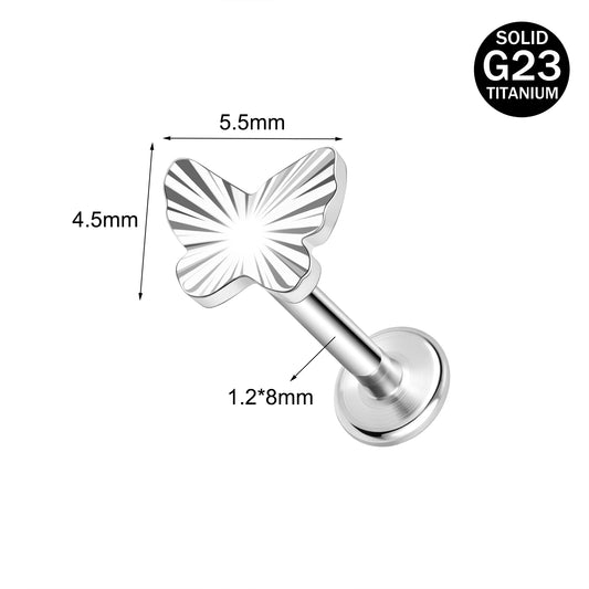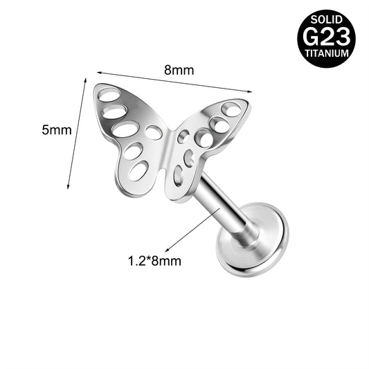16g G23 Titanium Labret Ring Butterfly Stud Earring Threaded Conch Helix Lip Piercing