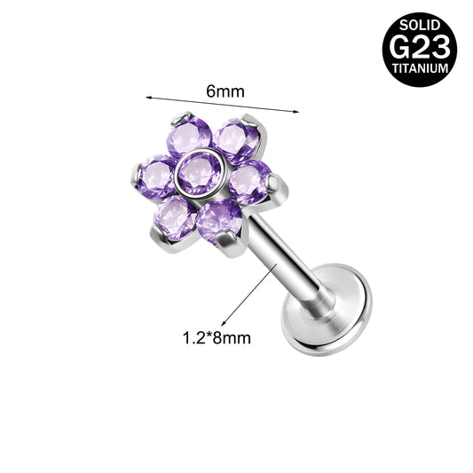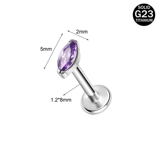 16g G23 Titanium Labret Ring Purple Zircon Stud Earring Threaded Conch Helix Lip Piercing