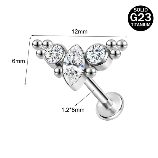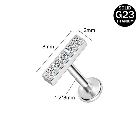 16g G23 Titanium Labret Ring Clear Zircon Stud Earring Threaded Conch Helix Lip Piercing