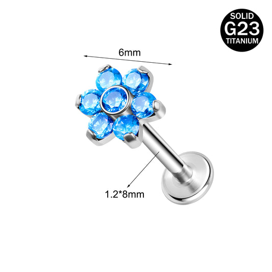 16g G23 Titanium Labret Ring Blue Zircon Stud Earring Threaded Conch Helix Lip Piercing