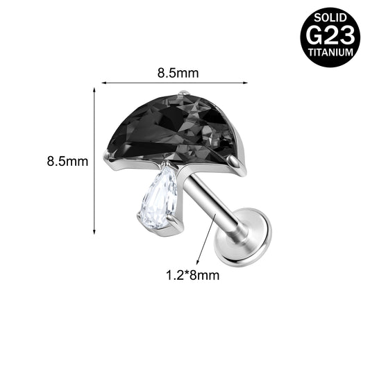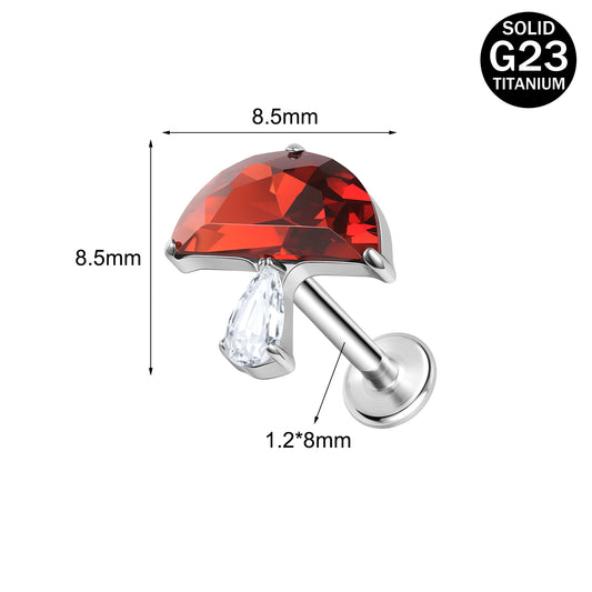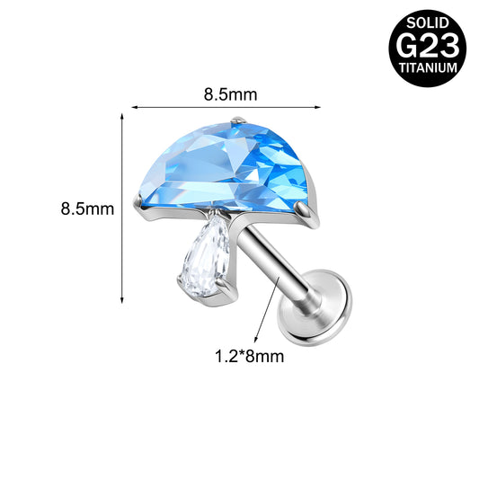 16g G23 Titanium Labret Ring Mushroom Stud Earring Threaded Conch Helix Lip Piercing