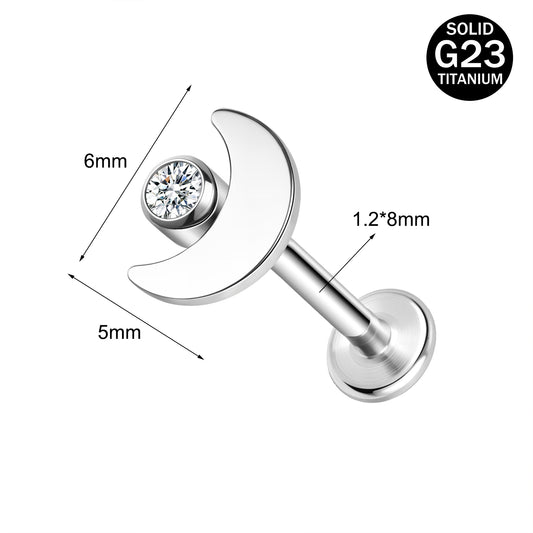 16g G23 Titanium Labret Ring Moon Stud Earring Threaded Conch Helix Lip Piercing