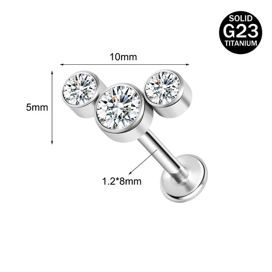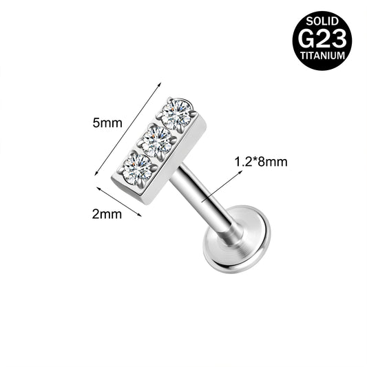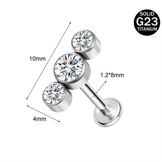 16g G23 Titanium Labret Ring Clear Zircon Stud Earring Threaded Conch Helix Lip Piercing