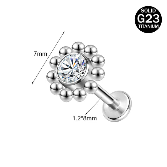 16g G23 Titanium Labret Ring White Zircon Stud Earring Threaded Conch Helix Lip Piercing