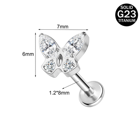 16g G23 Titanium Labret Ring Butterfly Stud Earring Threaded Conch Helix Lip Piercing