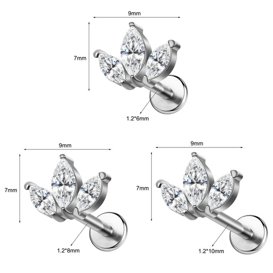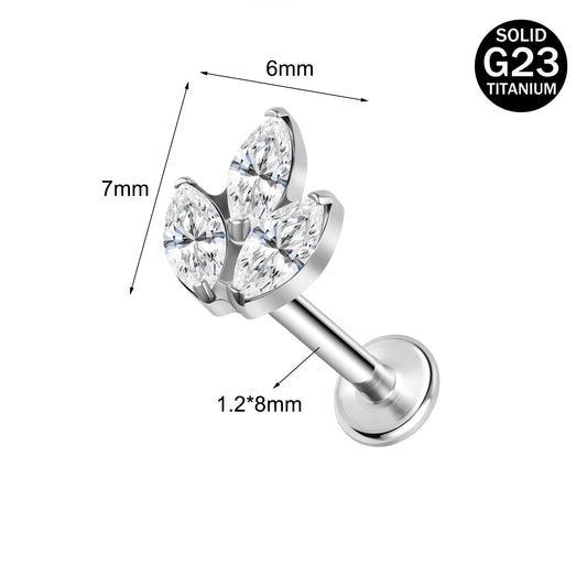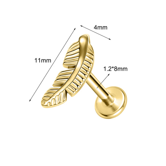 16g G23 Titanium Labret Ring Leaf Stud Earring Threaded Conch Helix Lip Piercing