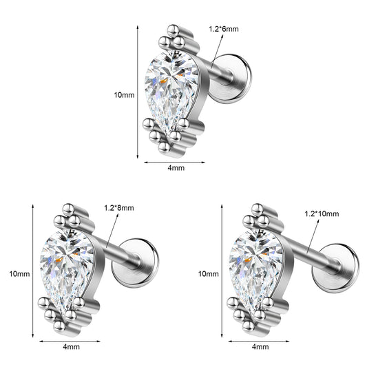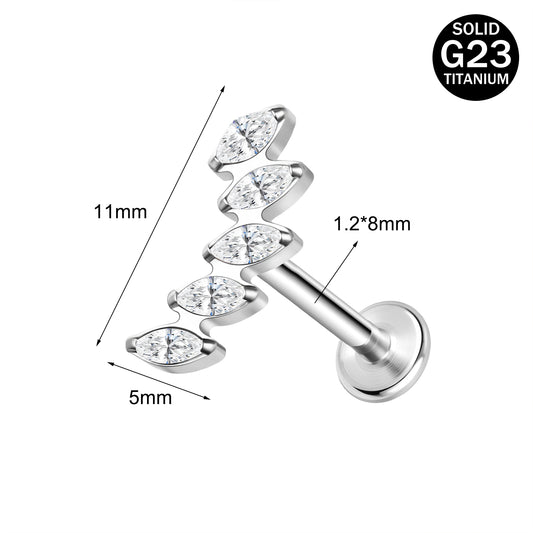 16g G23 Titanium Labret Ring Zircon Stud Earring Threaded Conch Helix Lip Piercing