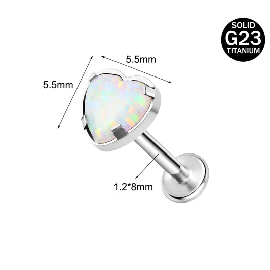 16g G23 Titanium Labret Ring Heart Stud Earring Threaded Conch Helix Lip Piercing