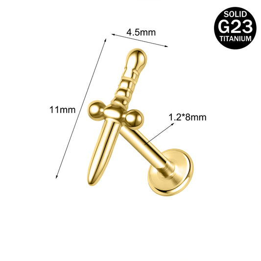 16g G23 Titanium Labret Ring Sword Stud Earring Threaded Conch Helix Lip Piercing