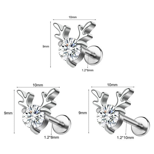 16g Antler Labret Ring Push in Stud Earring Threadless Conch Helix Lip Piercing
