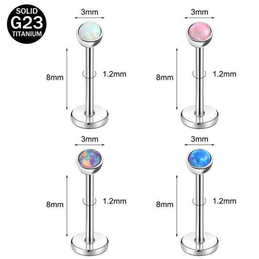16g G23 Titanium Labret Ring Opal Stud Earring Threaded Conch Helix Lip Piercing