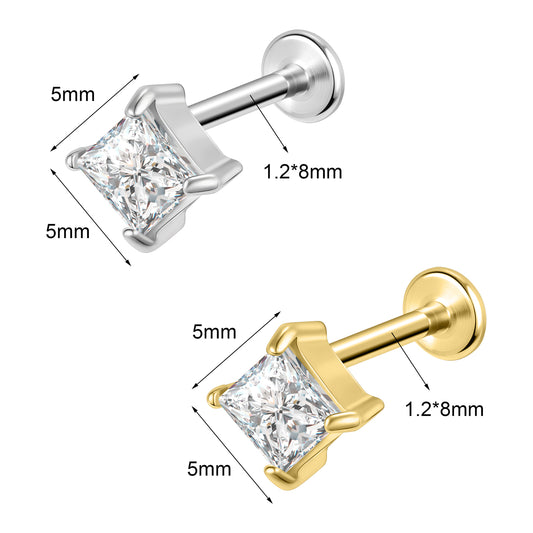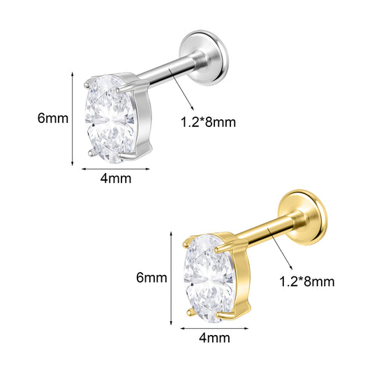 16g Clear Zircon Labret Ring Flat Back Stud Earring Conch Helix Lip Piercing