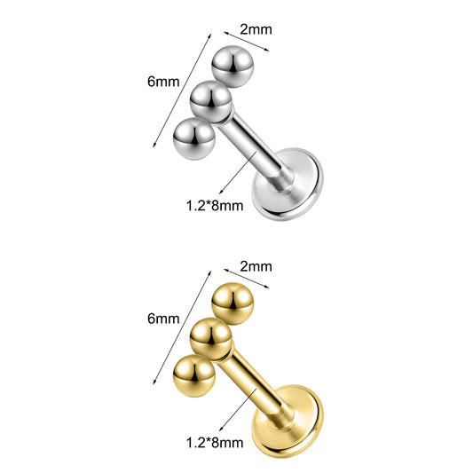 16g Steel Ball Labret Ring Flat Back Stud Earring Conch Helix Lip Piercing