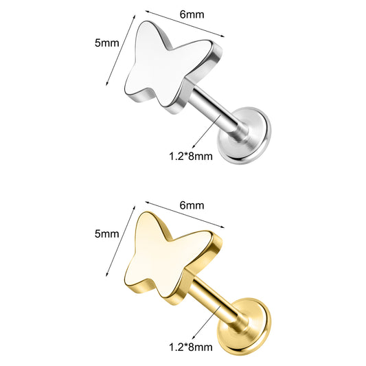 16g Butterfly Labret Ring Flat Back Stud Earring Conch Helix Lip Piercing