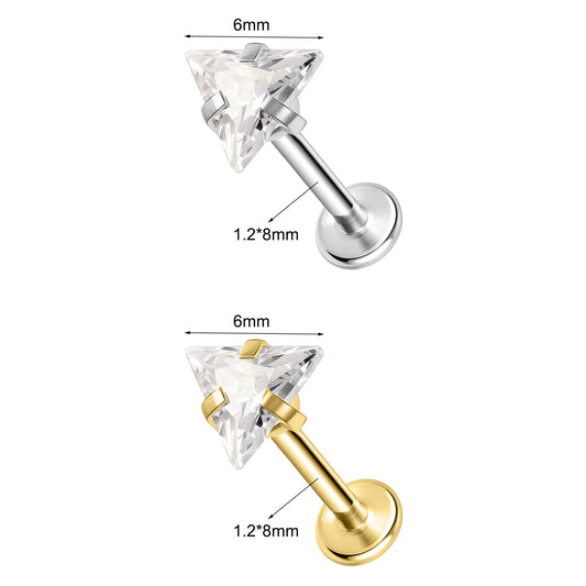 16g Triangle Labret Ring Flat Back Stud Earring CZ Conch Helix Lip Piercing