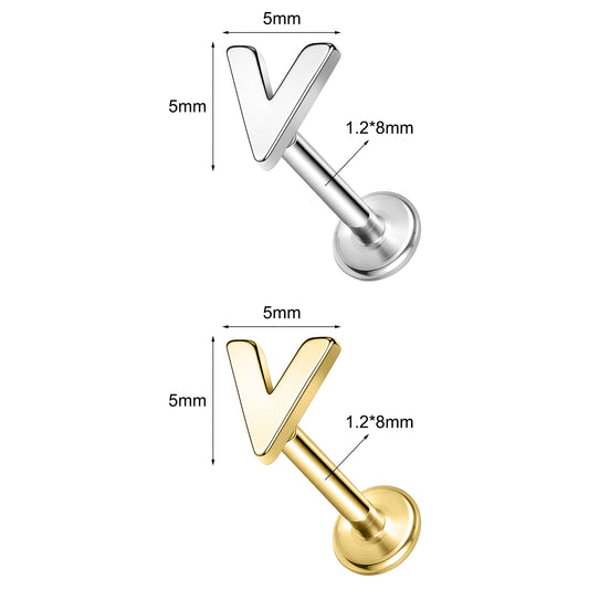 16g V-Shaped Labret Ring Flat Back Stud Earring Conch Helix Lip Piercing
