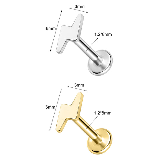 16g Lightning Labret Ring Flat Back Stud Earring Conch Helix Lip Piercing