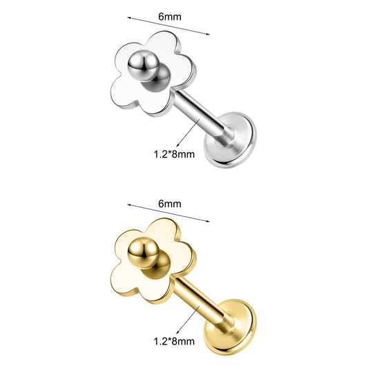 16g Flower Labret Ring Flat Back Stud Earring Conch Helix Lip Piercing