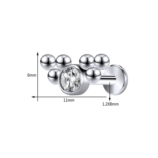 16G Round Crystal Labret Rings Ball Tragus Helix Conch Piercing
